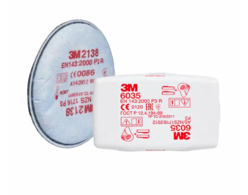 The 3M 6035 is a reusable, rectangular P2/P3 particulate filter for 3M reusable respirators that provides protection against solid and liquid particles, and is ideal for use in harsh environments due to its durable, spark-resistant casing