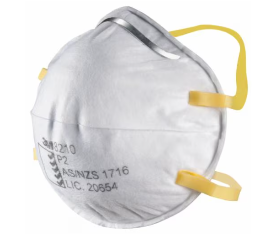 The 3M 8210 is a P2-rated, disposable, cupped particulate respirator designed to protect against dusts, mists, and aerosols by filtering at least 94% of fine particles, meeting Australian standards (AS/NZS 1716)