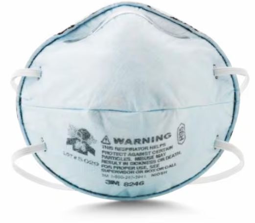 The 3M 8246 is a disposable, cup-style respirator providing P2/R95 protection against particulates, plus nuisance-level acid gas relief for gases like sulphur dioxide and hydrogen fluoride