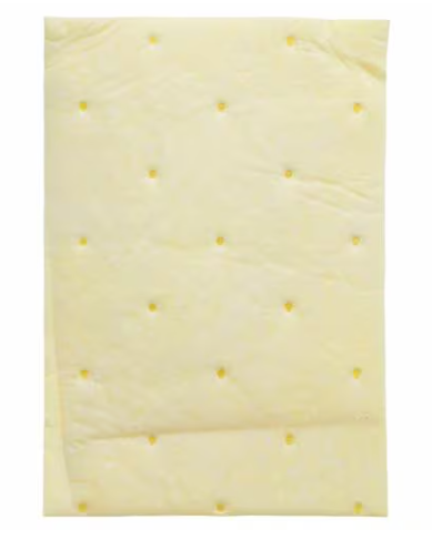 The yellow colour is a standard indicator for chemical sorbent pads, helping to identify the correct type for hazardous materials.