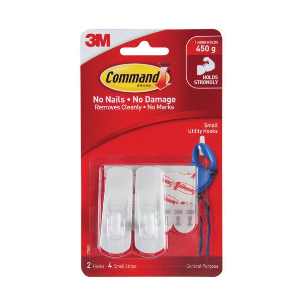 3M Command Self Adhesive Small Hook 17002 2 Pack Adelaide Direct Stationers