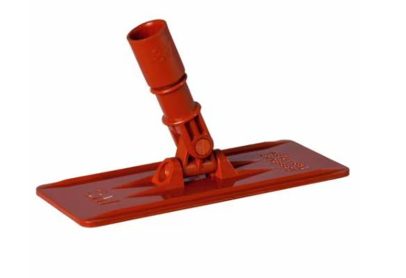 The holder has special grippers to secure various 3M Doodlebug pads, and the swivel mechanism allows it to clean effectively at any angle