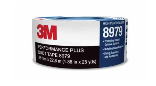 3M High Performance Duct Tape 8979 Black is a premium, versatile tape with a strong polyethylene film laminated to a cloth backing and a rubber adhesive, designed for both temporary and permanent indoor/outdoor applications where clean removal is needed for up to six months