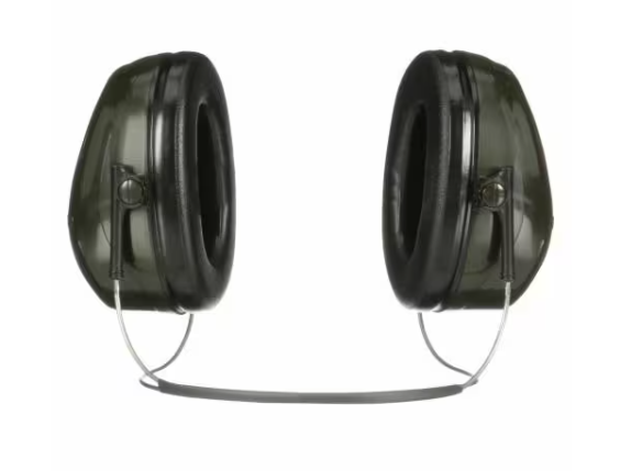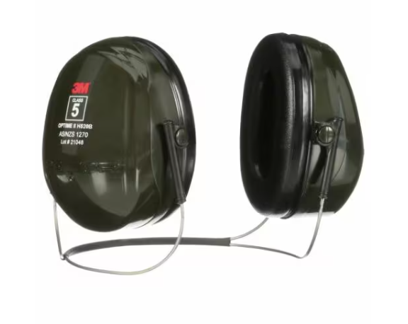 The 3M Peltor Optime II Neckband Earmuff H520B Green is a pair of green, high-visibility, neckband style earmuffs from 3M Peltor designed for demanding noise environments, such as airports, construction sites, and agricultural work