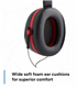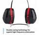 It features a double-casing design to minimize resonance, soft wide cushions for comfort and low pressure, and large cups to reduce heat and moisture build-up
