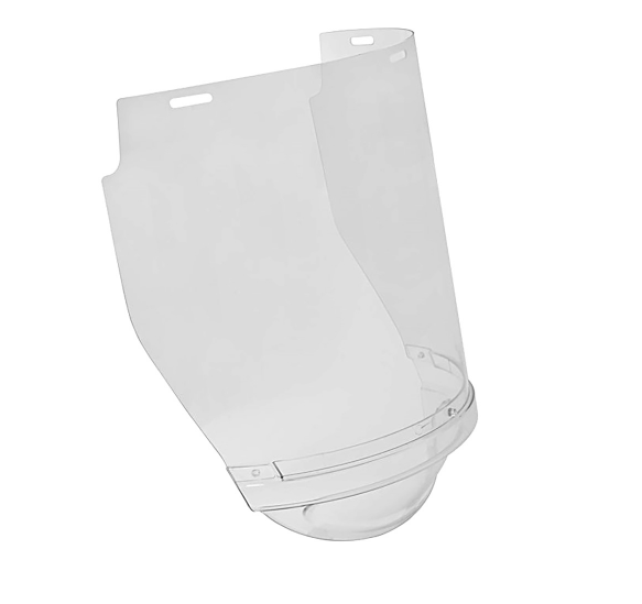 The 3M VV501 is a polycarbonate face visor with an integrated chin guard designed to protect against impacts, airborne particles, splashes of liquids and chemicals, and moderate heat