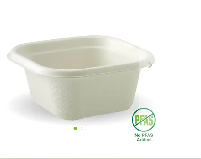These 480ml natural bagasse food containers are made with no added PFAS and pending home compostable certification to AS5810 standards.