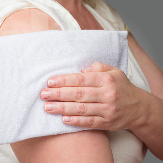 Insert the hot/cold pack into the towel cover provided to insulate the cold