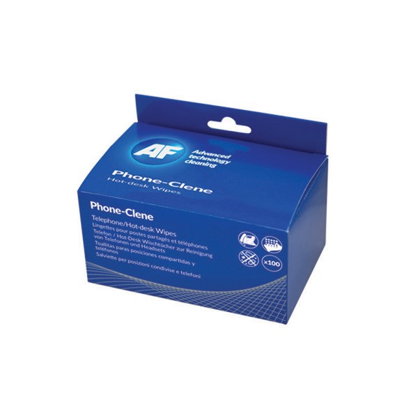 AF Phoneclene is a handy box of telephone/hot desk sachet wipes to effectively clean and refresh telephones and headsets in office, retail and call centre environments.