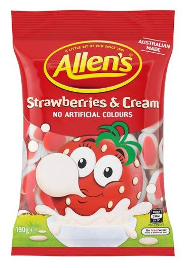 Allens Strawberries and Cream 190g (Sold as Each, 12 in a Box) Adelaide Direct Stationers