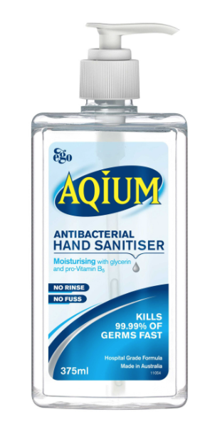 Aqium Antibacterial Hand Sanitiser 375ml is hospital strength and contains moisturisers to help keep hands soft, refreshed and hygienically clean