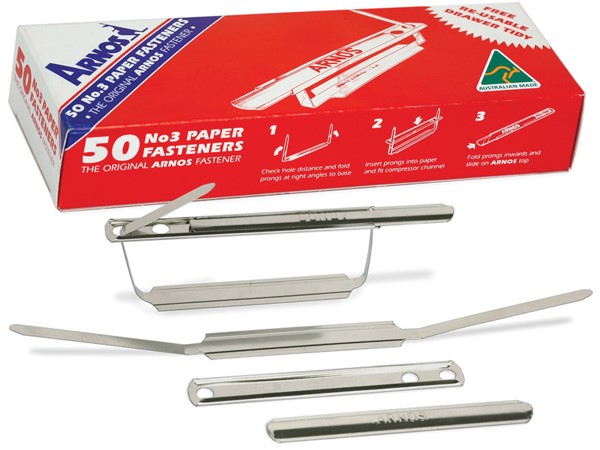 Arnos Paper Fasteners No.3 50 Box Adelaide Direct Stationers