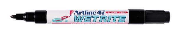 The unique ink formula in the Artline 47 allows for clear marking of wet non-porous surfaces such as metal, plastic, styrofoam, etc