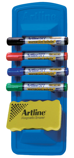 Includes 4 assorted artline 577 and magnetic whiteboard eraser