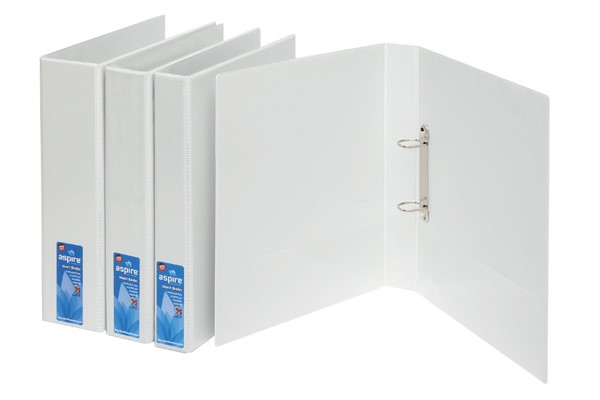 Aspire Insert Binder A4 2D Ring 25mm White Each (Sold as Each, 20 in a Carton) Adelaide Direct Stationers
