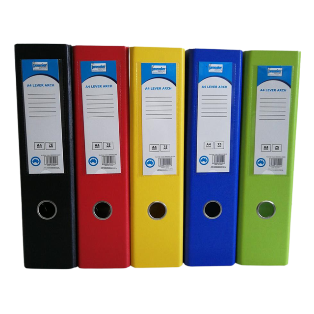 Aspire Lever Arch File Pvc 75Mm Black/Blue/Red/Yellow/Green A4 Adelaide Direct Stationers