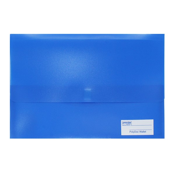Aspire Premier Foolscap Poly Document Wallet Gusseted Velcro Blue