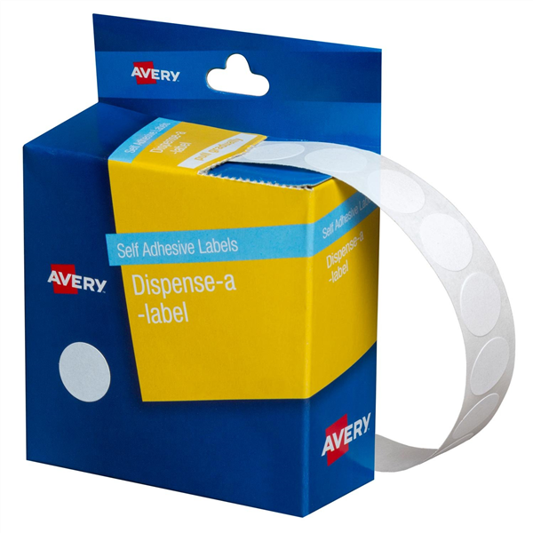 Avery Dispenser Dot Stickers 14mm Diameter White 1200 Pack (Sold as Each, 5 in a Box) Adelaide Direct Stationers