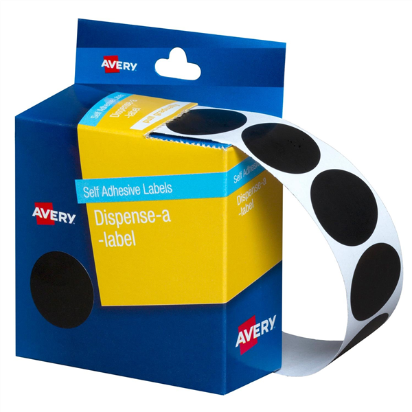 Avery Dispenser Dot Stickers 24mm Diameter Black 500 Pack (Sold as Each, 5 in a Box) Adelaide Direct Stationers