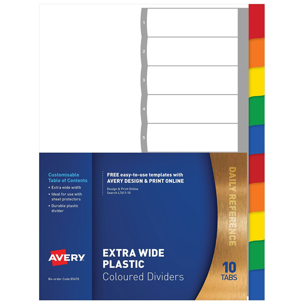 Avery Dividers Extra Wide 1 to 10 Tabs Multicoloured Set Adelaide Direct Stationers