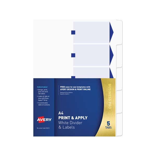 Avery Dividers IndexMaker 5 Tab A4 White Adelaide Direct Stationers