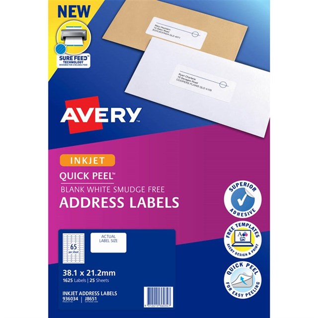 Avery Inkjet Label J8651 65UP Pack 25 Adelaide Direct Stationers