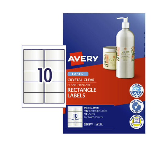 Avery L7113 Laser Labels Rectangle 10UP Clear 10 Pack Adelaide Direct Stationers
