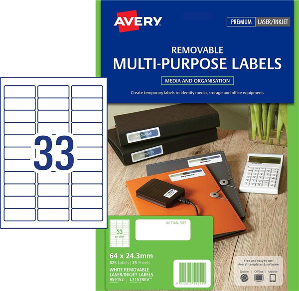 Avery Removable Multi purpose Labels are designed for many different uses around the home or office and come in a range of sizes to suit your labelling needs