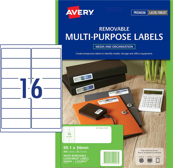 Avery Removable Multi purpose Labels are designed for many different uses around the home or office and come in a range of sizes to suit your labelling needs