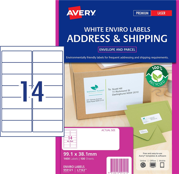 With a label format of 99.1 x 38.1 with 14 labels per sheet, the 100 sheet pack gives you a total of 1,400 labels