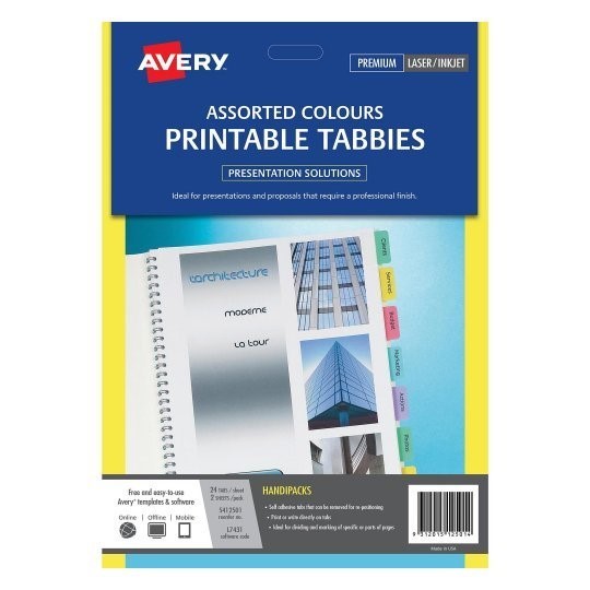 Avery L7431 Print On Tabbies 48 Tabs Assorted Pack Adelaide Direct Stationers