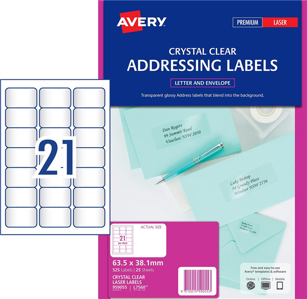 Avery L7560 Laser Labels 21UP Clear 25 Pack Adelaide Direct Stationers