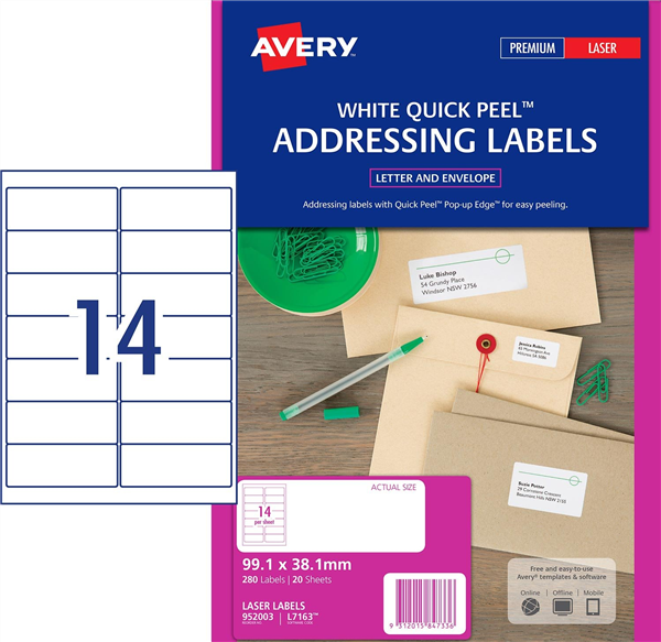 Avery Label Addressing Quick Peel White 20 Pack Adelaide Direct Stationers