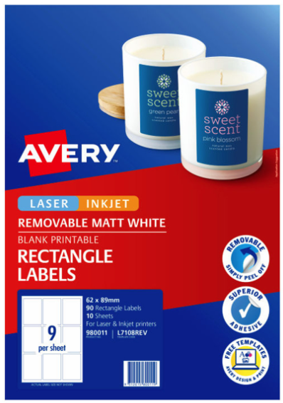 Avery Label Rectangle L7108REV 9Up Pack 10 Adelaide Direct Stationers