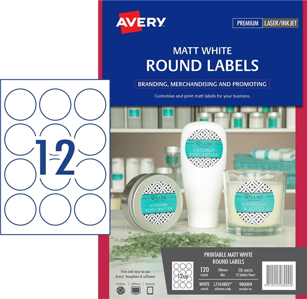 These Avery Round Product Labels are ideal for when you want to your labels to be removable after your products have been purchased
