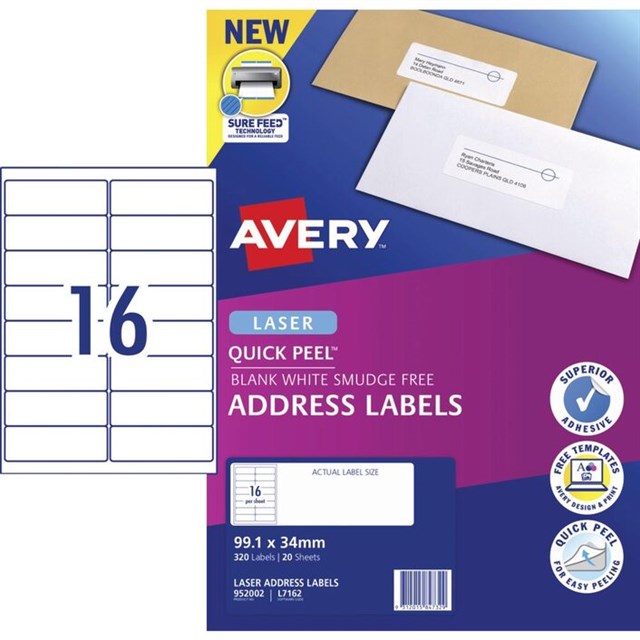 These Avery Laser Address Labels can be printed on allowing you to customise your own address labels, barcodes, logos and more