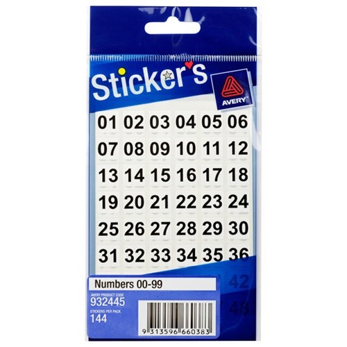 Avery Multi Purpose Number Stickers 00 to 99 White Adelaide Direct Stationers