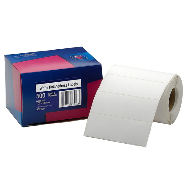 Avery Roll Address Labels 102x36mm White 500 Box Adelaide Direct Stationers