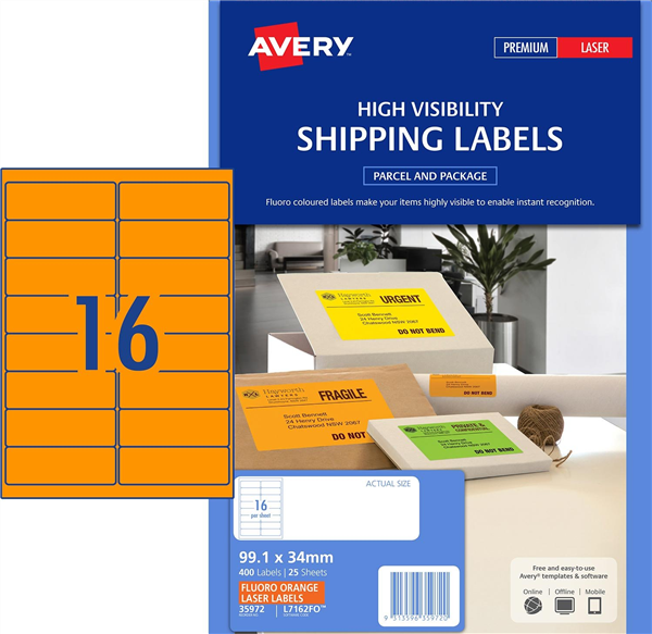 Avery Shipping Label High Visibility Fluoro Orange 25 Pack Adelaide Direct Stationers