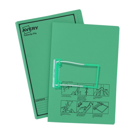 Avery Tubeclip File Foolscap Green with Black Print 20 Pack