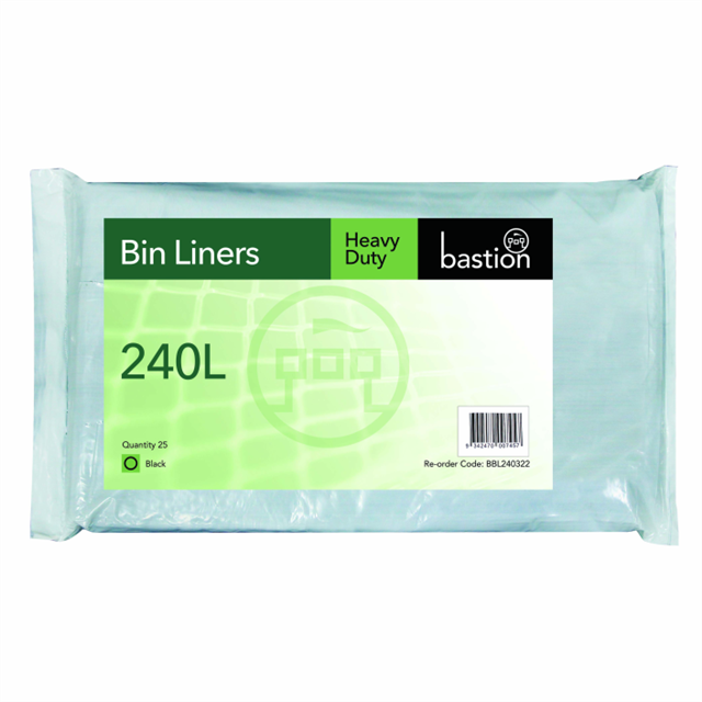 Bastion 240 Litre Heavy Duty Bin Liners Black Pack 25 Adelaide Direct Stationers