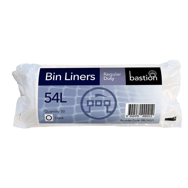Bastion 54 Litre Regular Duty Bin Liners Black 50 Roll Adelaide Direct Stationers