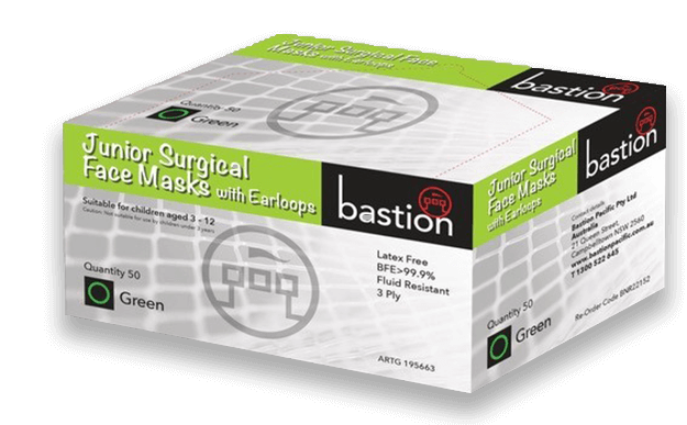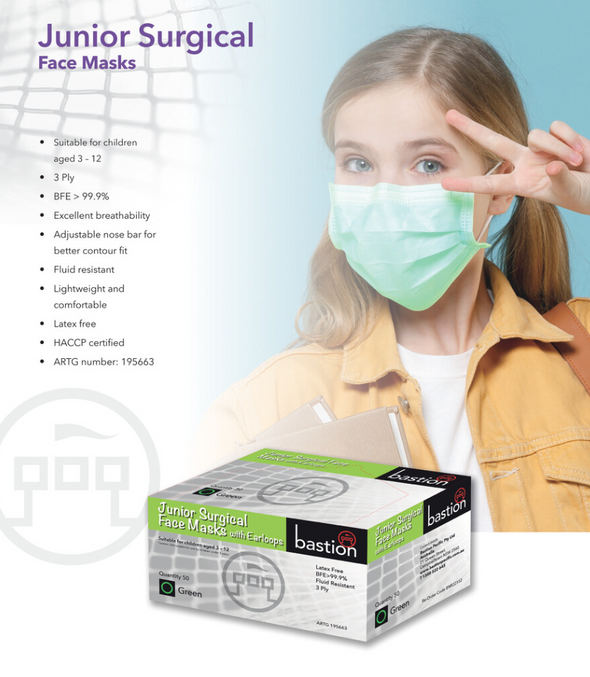 Bastion Junior Face Mask Surgical Green Box 50 Adelaide Direct Stationers