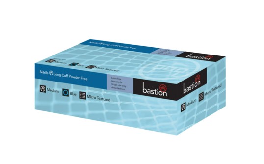 Bastion Nitrile Diamond Grip Long Cuff Blue Powder Free Large Box 50