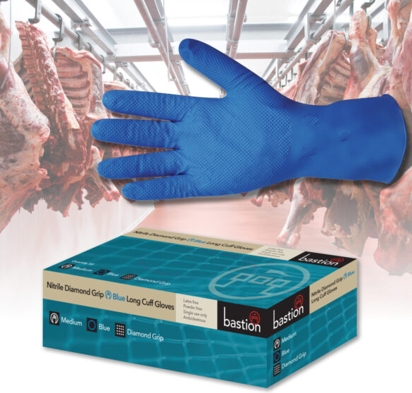 Bastion Nitrile Diamond Grip, Long Cuff, Blue, Powder Free Medium Box 50 Adelaide Direct Stationers