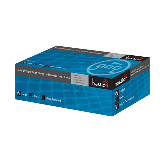 Bastion Nitrile SuperTouch Blue Long Cuff Gloves XL 100 Pack