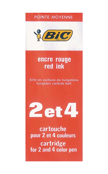 Bic Cartouche Refill for Ballpoint 2 and 4 Pens Medium Red