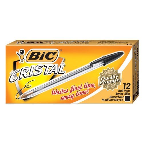Bic Cristal Ballpoint Medium Black 12 Box