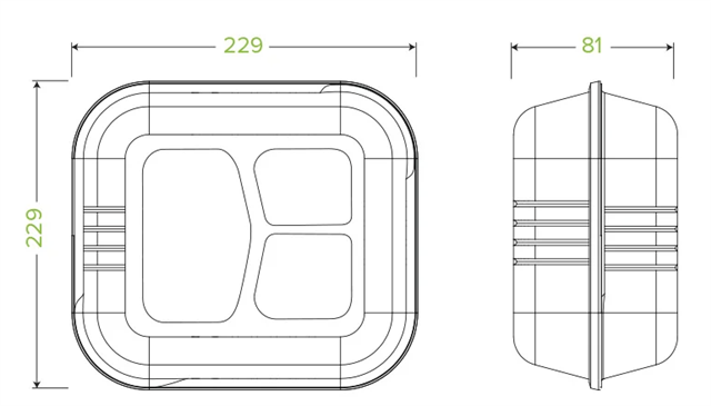 BioPak 3 Compartment Clamshell 23X23X8Cm 100 Pack White