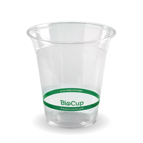 Clear BioCups are sustainably sourced from managed plantations with a bioplastic lining made from plants, not oil